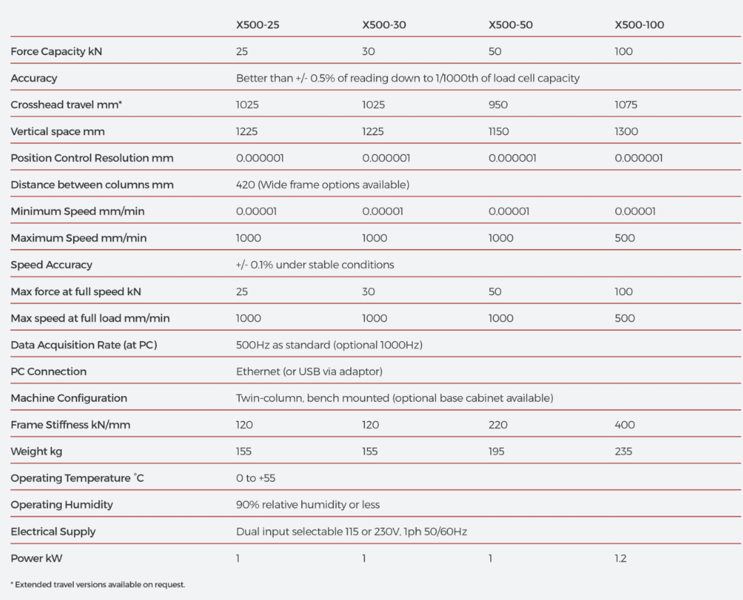 High stiffness loading frames with solid specialised steel crossheads and rigid extruded support columns with T-slots for accessory mounting.