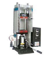Pneumatic presses available in a clamping force of up to 30 tons. Suited for both production and lab environments. Clean and quiet operation, improved energy-efficiencies and greater precision/reliability over hydraulic presses. Temperature controls plus manual or proportional controls available.