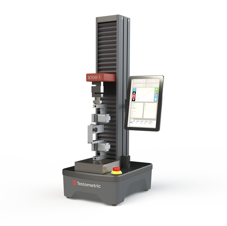 Dedicated tissue testing model based on the X100-1 Universal Testing Machine, complete with pneumatically operated grips and ‘Finch Wet Strength’ fixture for both wet and dry tests according to BS EN ISO 12625 or TAPPI T456 & T576. Featuring full computer control and precision AC servo drive system, the universal design allows the machine to be easily adapted for other test types (burst, peel, compression etc.) using Testometric’s extensive range of grips and fixtures.